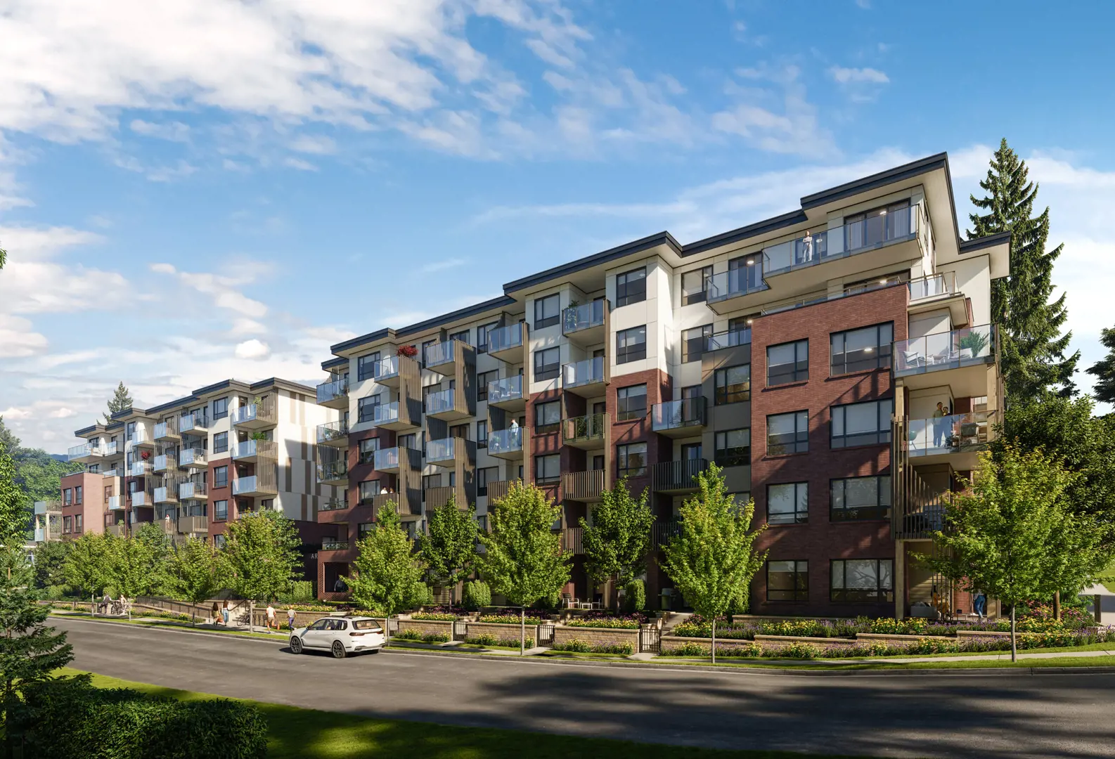 Classic and inviting, Arcadia’s earthy textures and timeless brick exterior are complemented by bold concrete accents, uniting the architectural facade of this new community seamlessly with the surrounding natural landscape. The charming courtyards are a place of tranquillity, starring outdoor art fixtures, marvelous greenery, and picturesque fountains that embellish the broom-brushed stone seating areas. With carefully selected materials taking its environment into consideration, Arcadia is set to be a centerpiece in of the already beautiful community of Burquitlam.