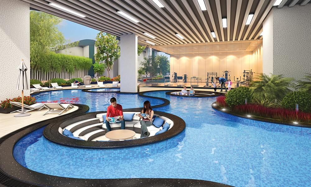 - Dual towering structures interconnected at podium levels, offering leisure and luxury.