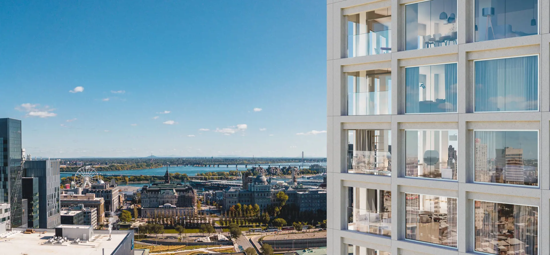 La Tour Fides is a 283-unit luxury condominium project with a full palette of common areas and four levels of underground parking. Our units offer unobstructed views of the Old Port, St-Lawrence River, city skyline and Mont Royal.