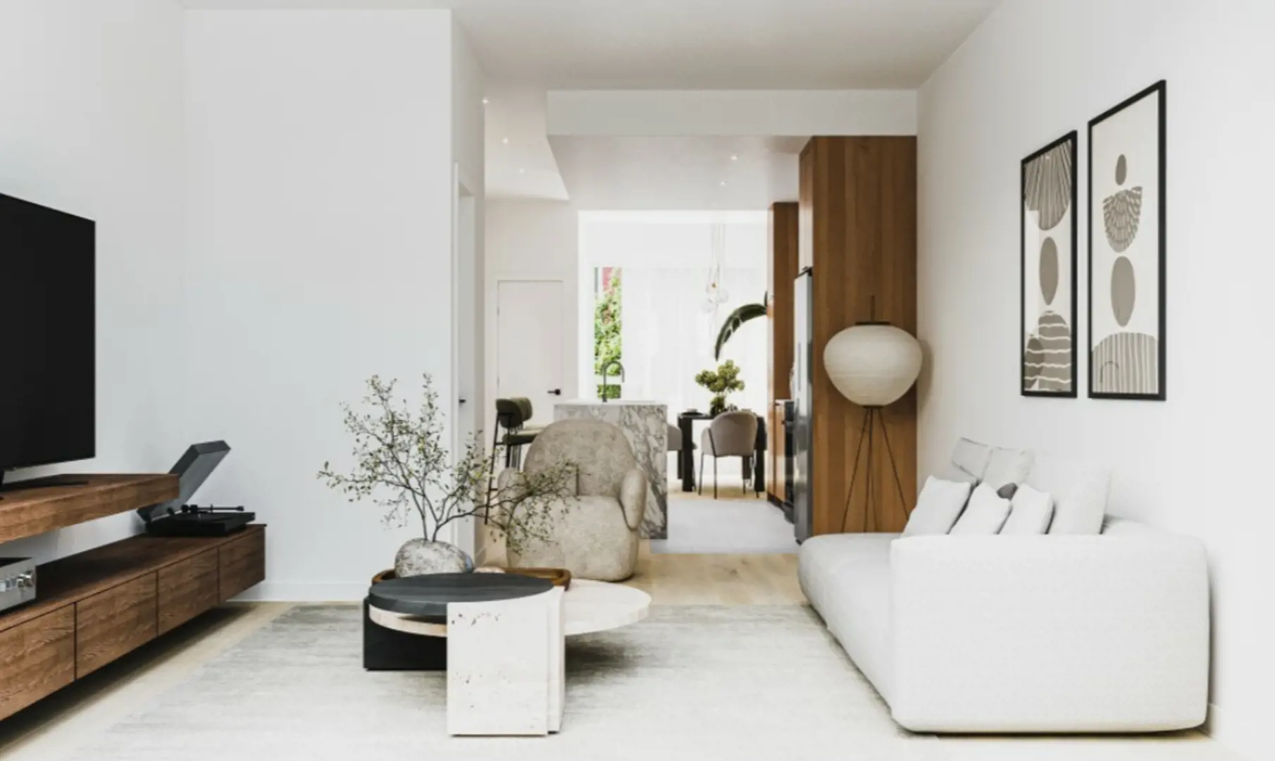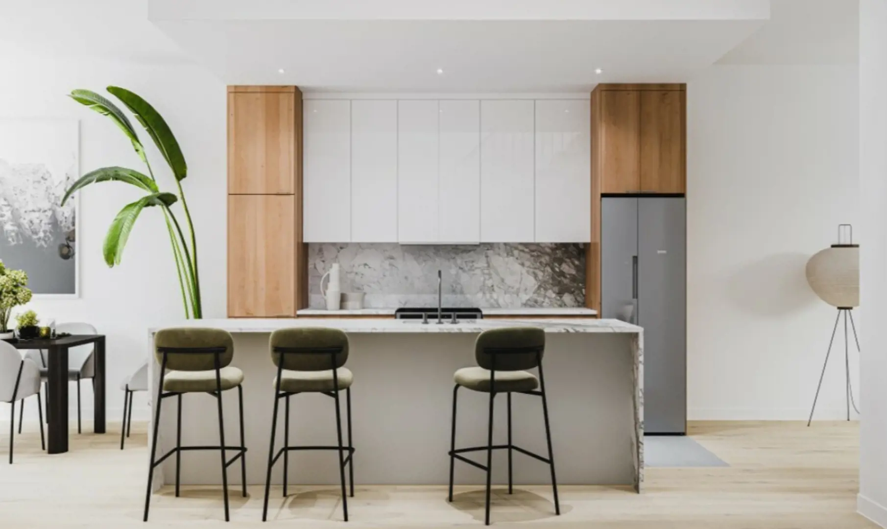 The spaces offer spaciously designed layouts, large windows, and high-end finishes to maintain harmony and balance throughout. Select among the two- or three-bedroom duplexes and the three- or four-bedroom townhouses which all offer private outdoor spaces and underground parking. The well-thought-out development easily accommodates families, couples, and those looking for a larger space in a dynamic neighborhood.