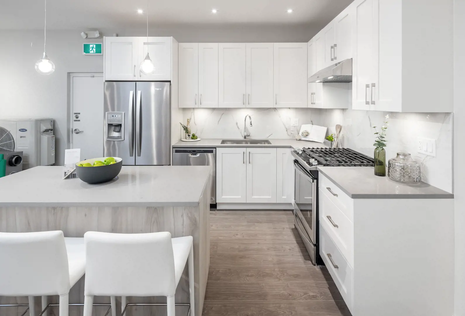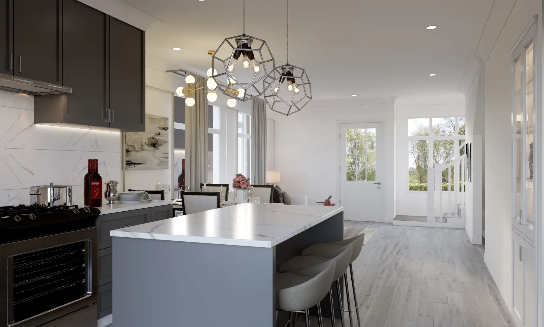 HighGate Homes is a collection of 23 tudor style townhouses that combine both timeless architecture and contemporary interior design. With every detail crafted for modern living, each home is integrated with its own heat, ventilation and air conditioning (HVAC) system, including a heat recovery ventilator (HRV) unit that fills your home with fresh outdoor air. Have peace of mind with your new smart home system, and enjoy a green future with onsite electric vehicle (EV) parking.