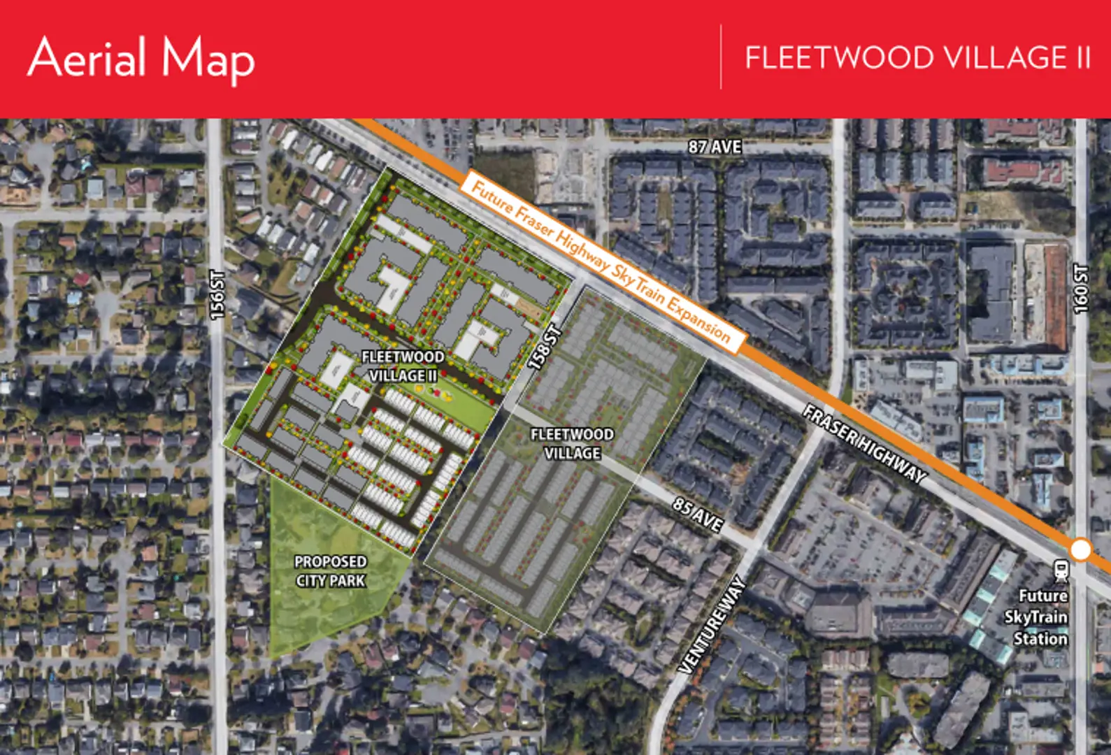 currently under construction at 15820 Fraser Highway, Surrey. The development is scheduled for completion in 2022. Fleetwood Village 2 (Townhomes) has a total of 162 units. Sizes range from 1327 to 1648 square feet.