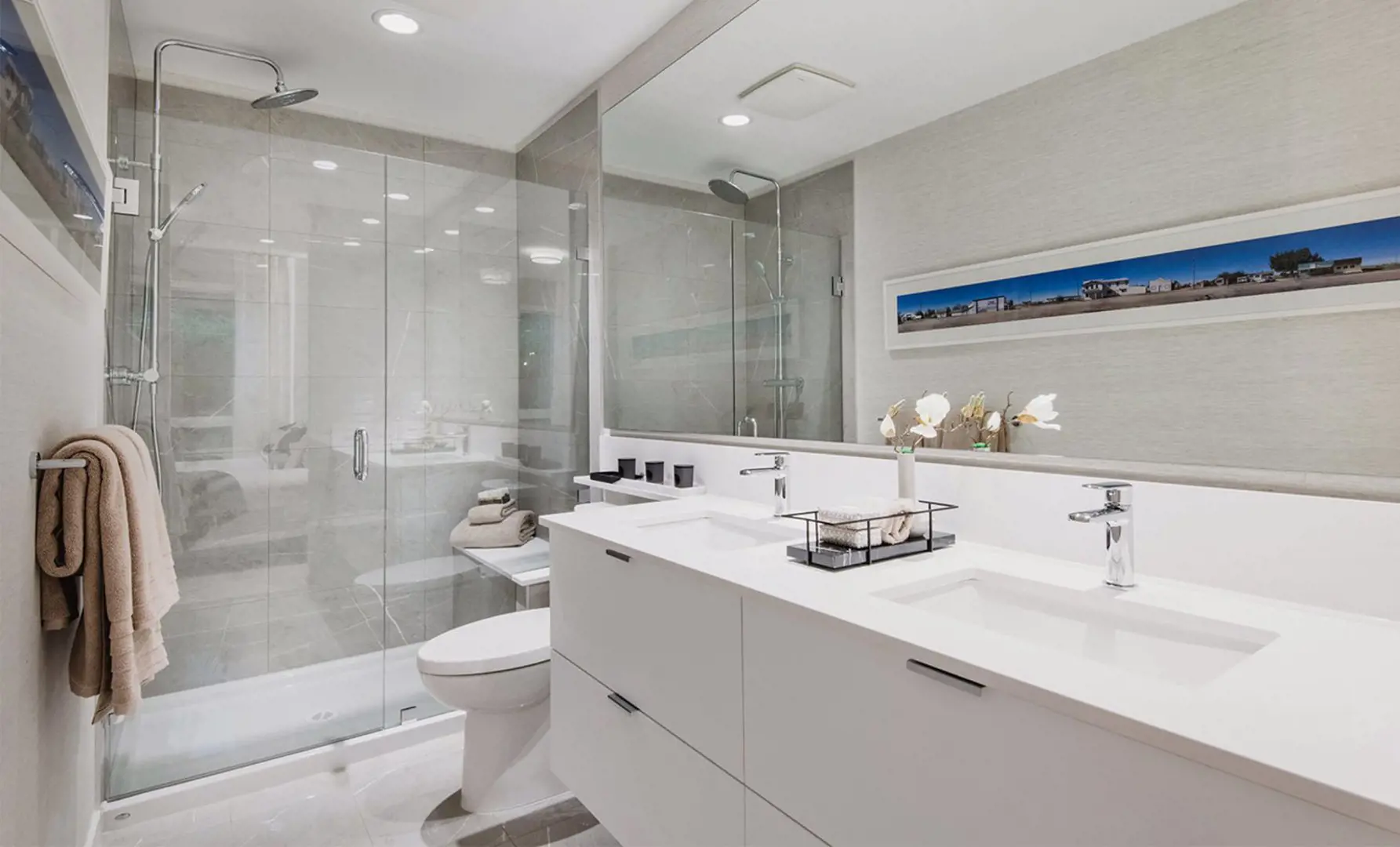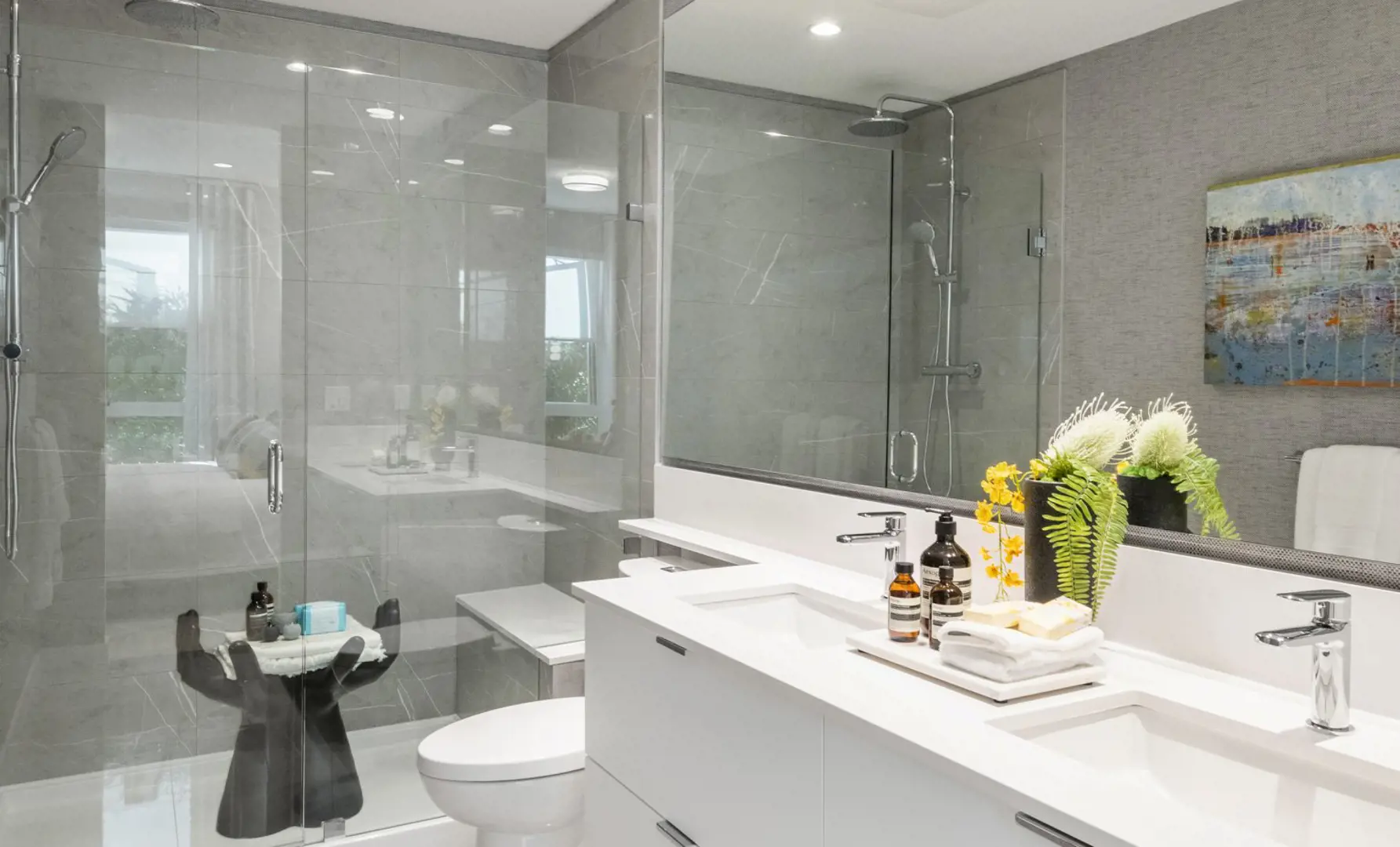 • Designer-selected engineered stone countertops, dual porcelain sinks and polished chrome hardware (most ensuites)