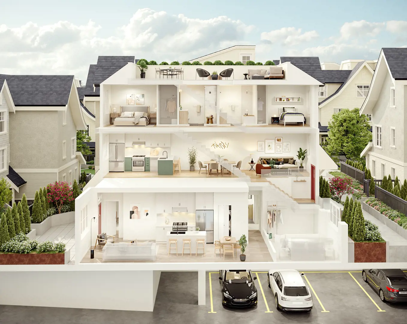 Following in the footsteps of The Robinsons, Formwerks Boutique Properties presents The Robinsons Parkside Collection — a West Coquitlam community with even more homes, more variety, and more possibilities. Just across the street from the original, the Parkside Collection features two and three bedroom homes, some with lock-off suites, rooftop decks, or courtyard orientations.