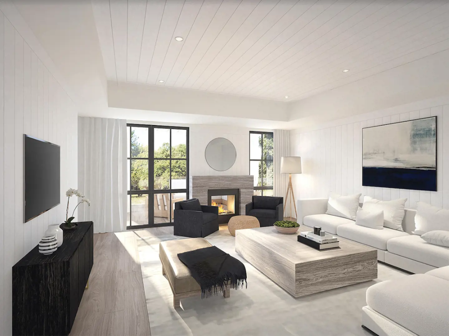Upgraded modern contemporary trim with finish 7 1/4” baseboard and 3 1/2” casing to all doorways, 10. windows, and doors. Interior doors to be two panel style.