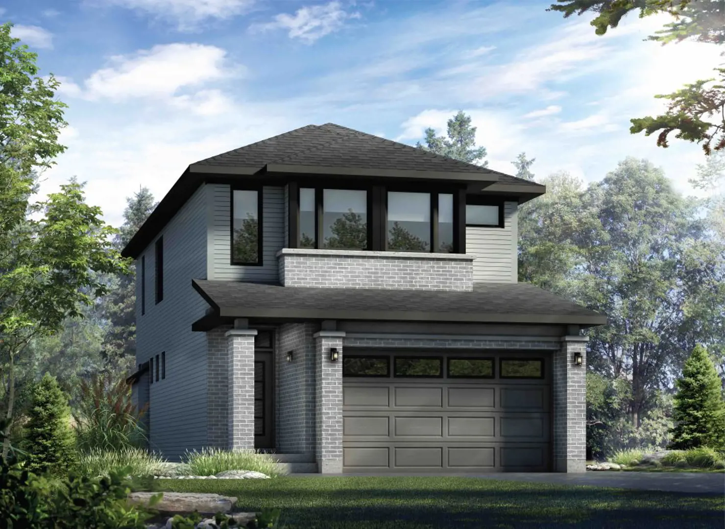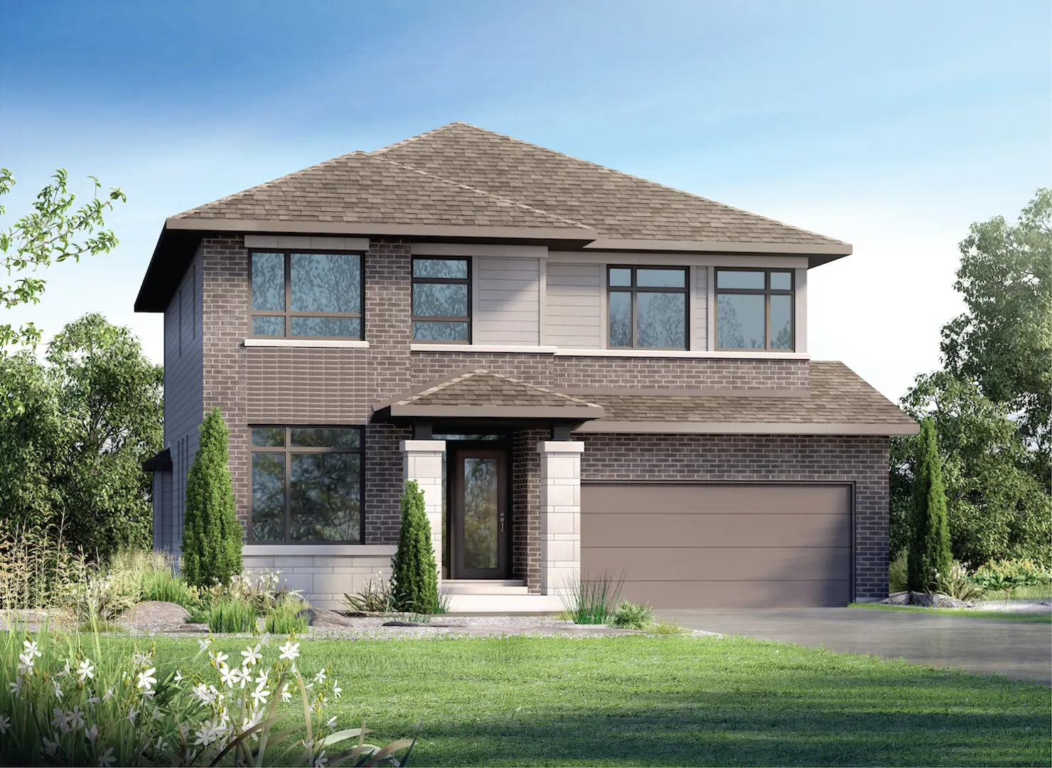- Brick, vinyl siding, aluminum fascia as indicated on drawing (exterior colour package pre-assigned by builder architect)