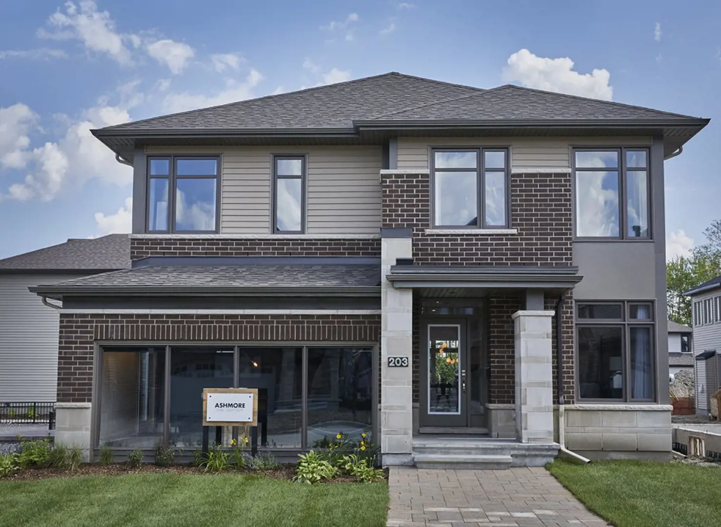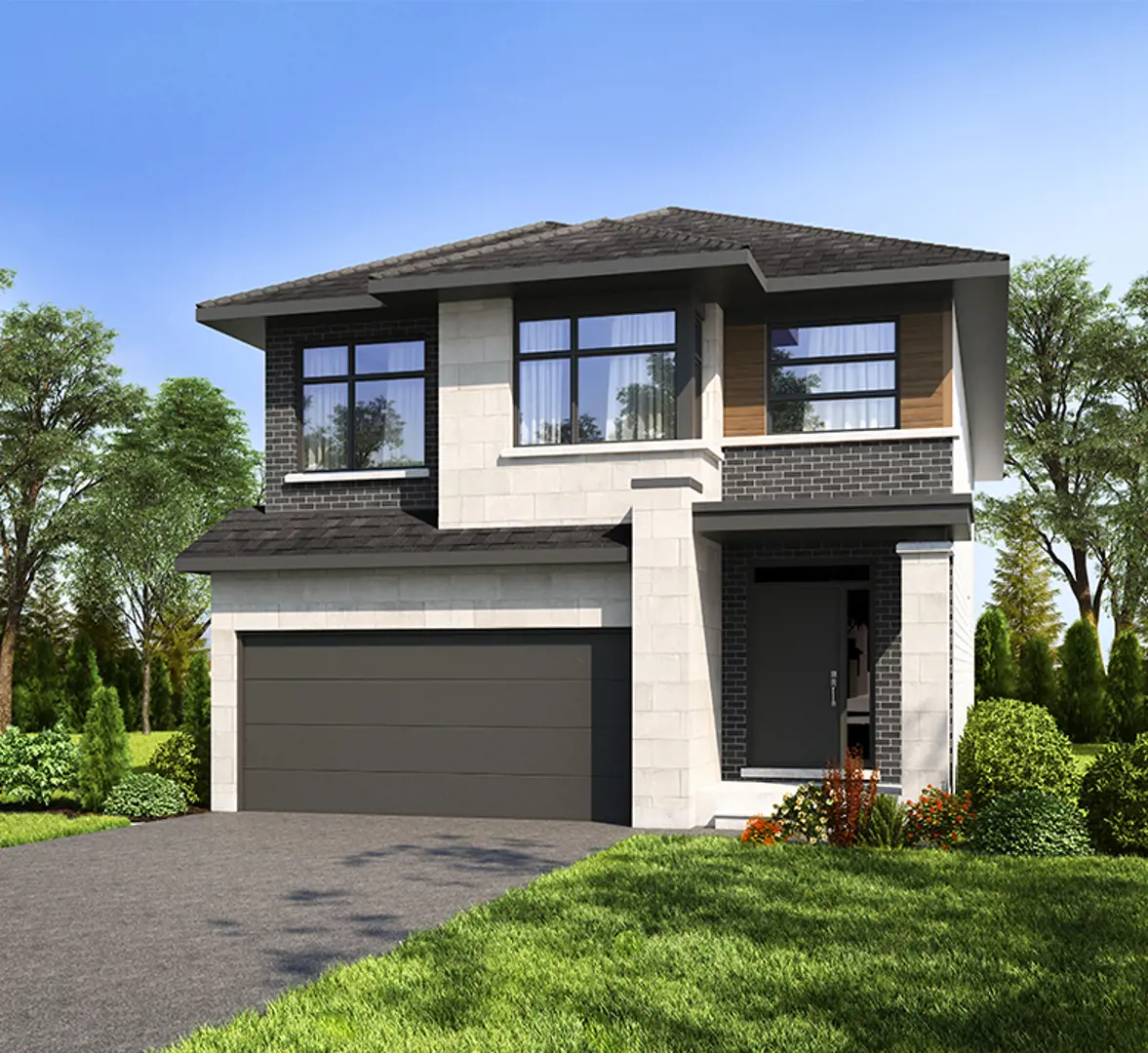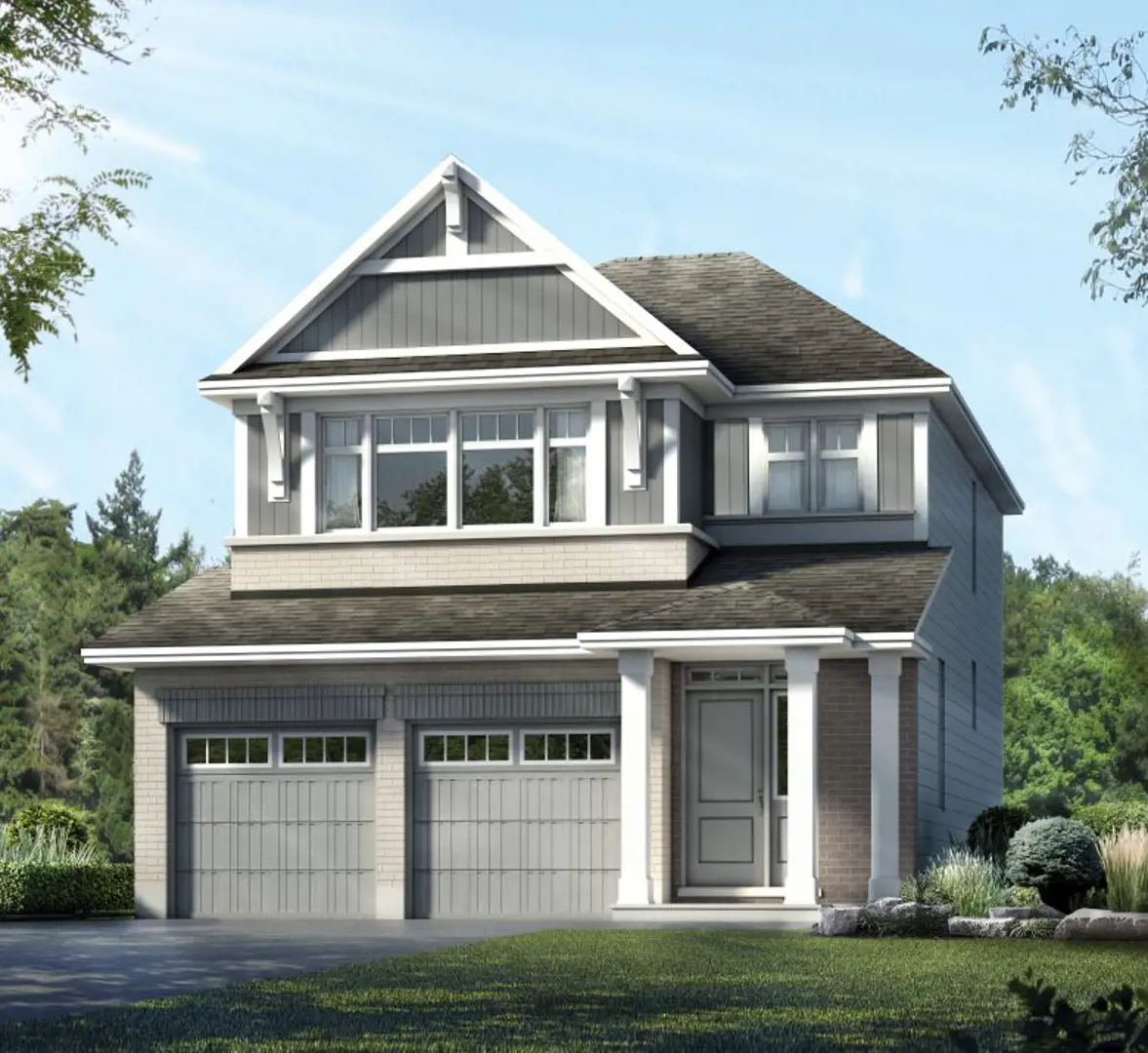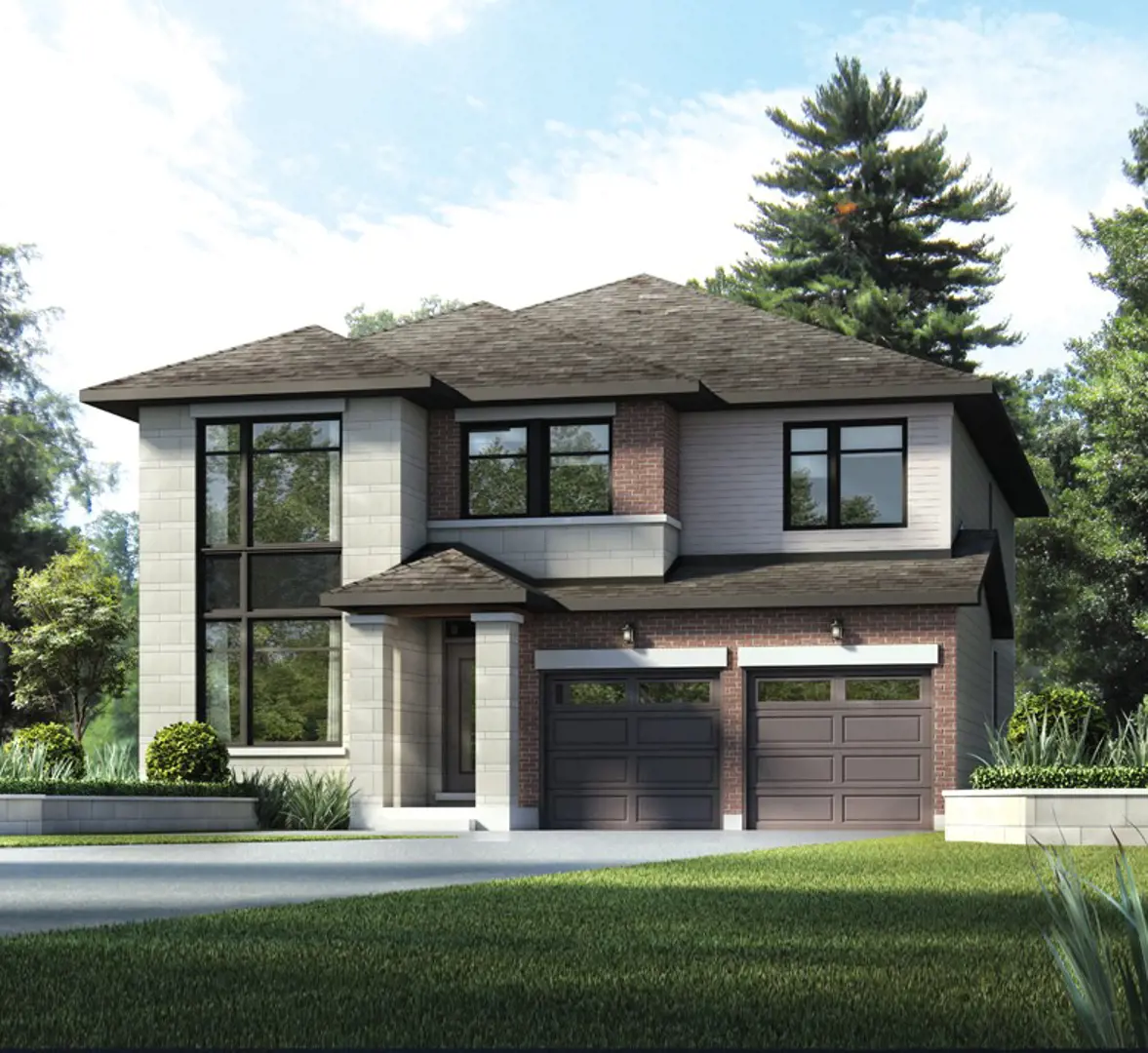 - Brick, vinyl siding, aluminum fascia as indicated on drawing (exterior colour package pre-assigned by builder architect)