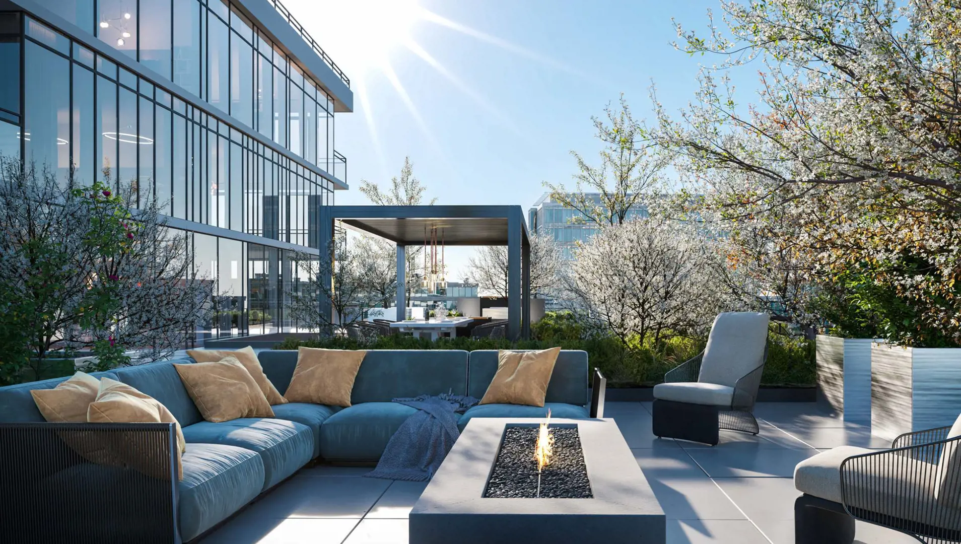 • Outdoor amenity spaces and rooftop designed by landscape architect Adesso Design