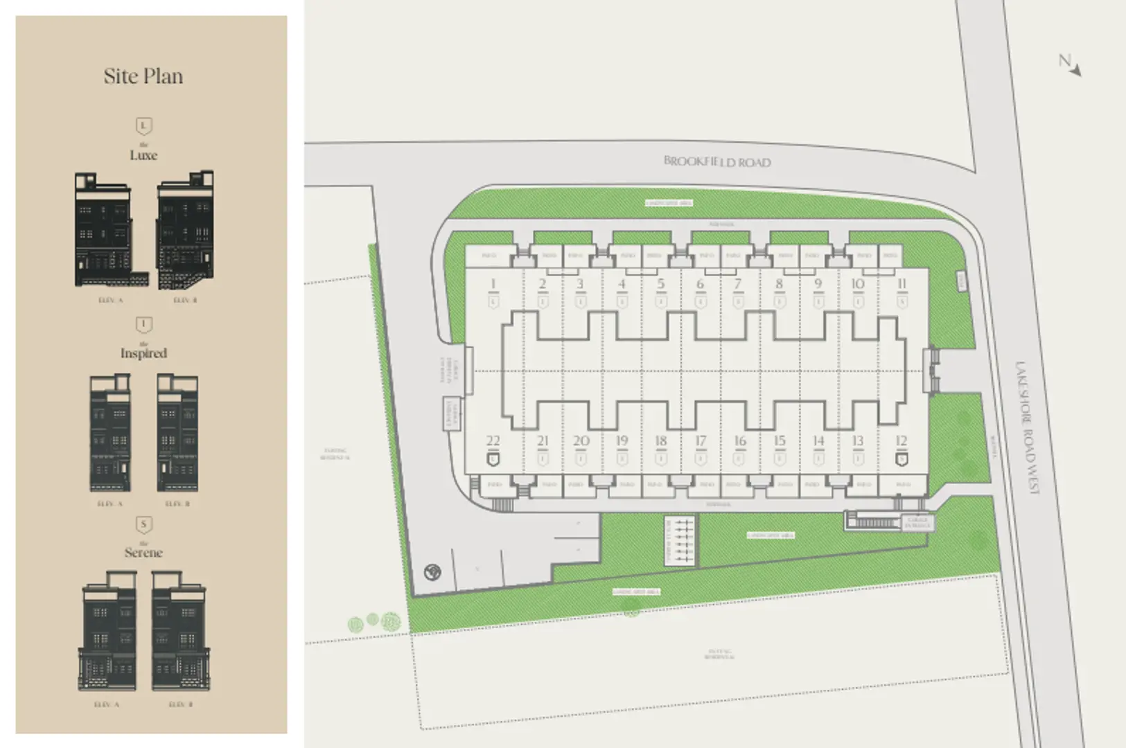 Harbour Place is a new townhouse development by Biddington Homes currently under construction at 174 Lakeshore Road West, Oakville. The development is scheduled for completion in 2023. Available units range in price from $1,929,900 to $2,269,900. Harbour Place has a total of 22 units. Sizes range from 2112 to 2537 square feet.