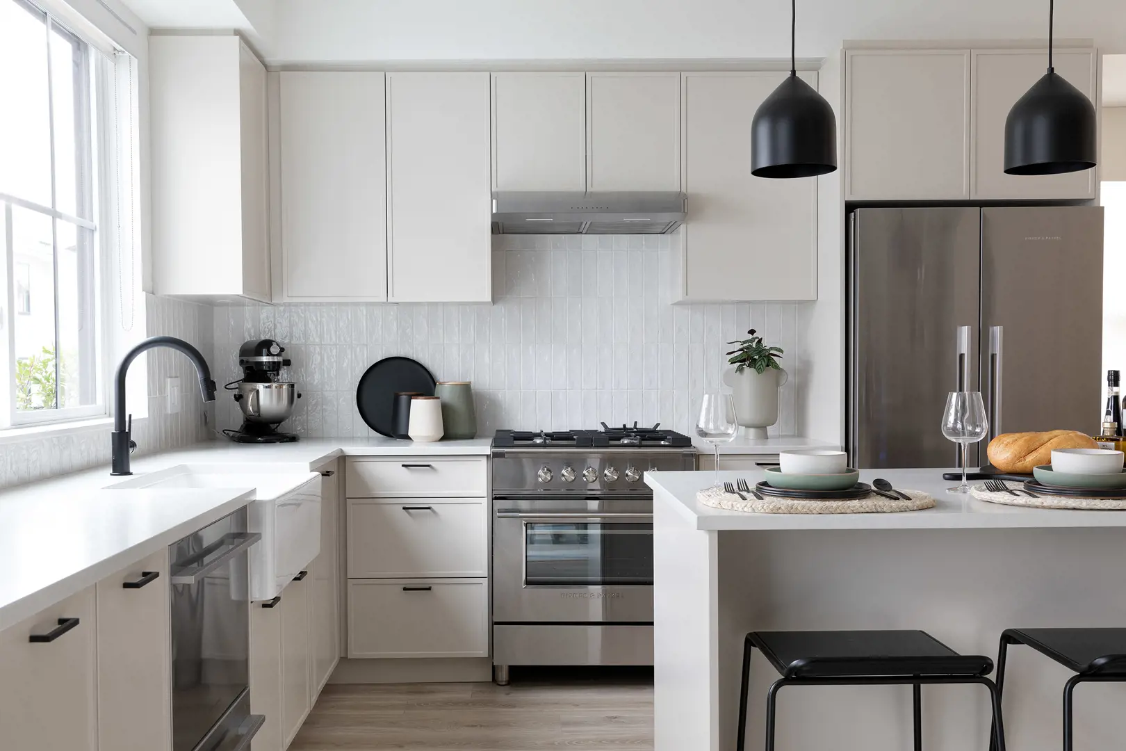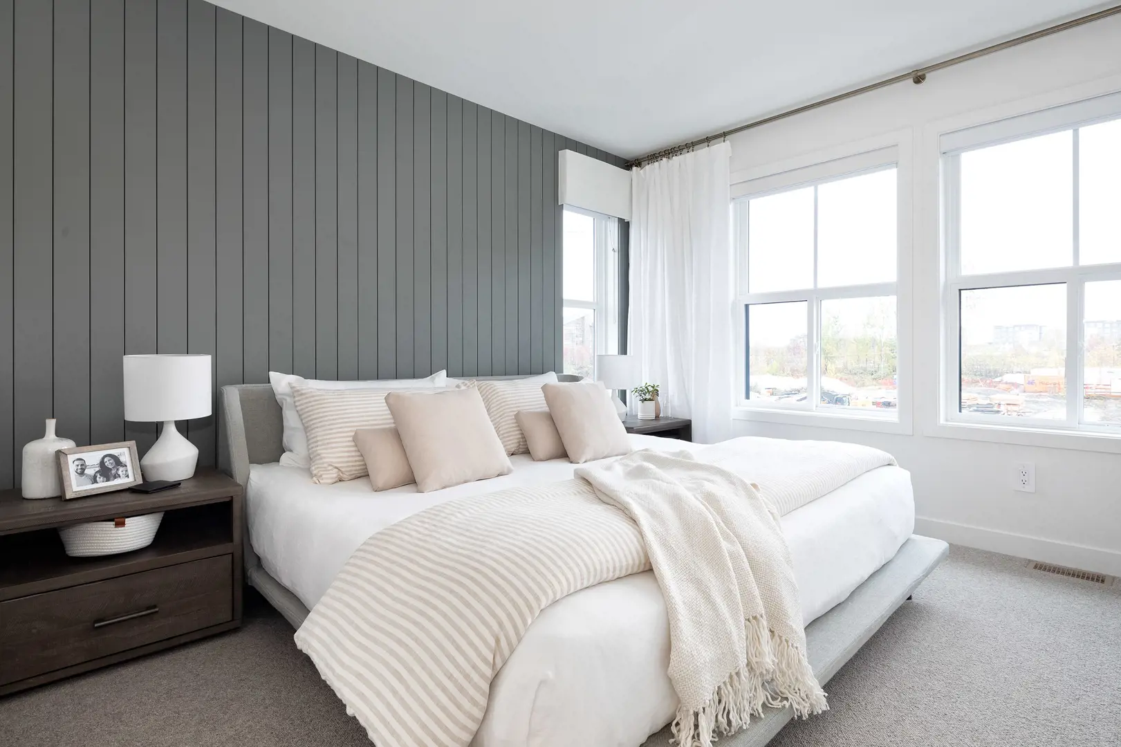 Heath is a modern-farmhouse inspired townhome project of 40 homes. The project at 7937 206 Street is situated within the Yorkson Neighbourhood, conveniently located beside a plethora of schools, restaurants, pubs and shopping areas. The project is a quick 10 minute drive to Willowbrook Shopping Centre, a 15 minute walk away from Peter Ewart Middle School/R.E. Mountain Secondary School, and a 5 minute walk to the Yorkson Creek Trails and a 52 acre nature park. The project offers 2 different color themes, a dark green theme with bronze colored faucets or a light cream theme with matte black colored faucets., Kitchen Floor: Laminate, Kitchen Counter: Quartz, Entry Floor: Laminate, Living Area Floor: Laminate, Bedroom Floor: Carpet, Main Bathroom Floor: Tile, Main Bathroom Counter: Quartz, Ensuite Bathroom Floor: Tile, Ensuite Bathroom Counter: Quartz, Cabinets: Laminate, Appliance Finish: Stainless, Fridge: Bottom Freezer, Stove: Gas, Microwave: Yes, Brands: Fisher & Paykel, Panasonic, Broan, Heating Source: Forced Air, AC: Option
