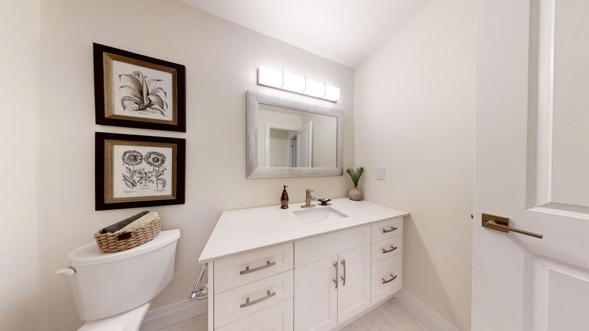 • Framed mirrors over all vanities