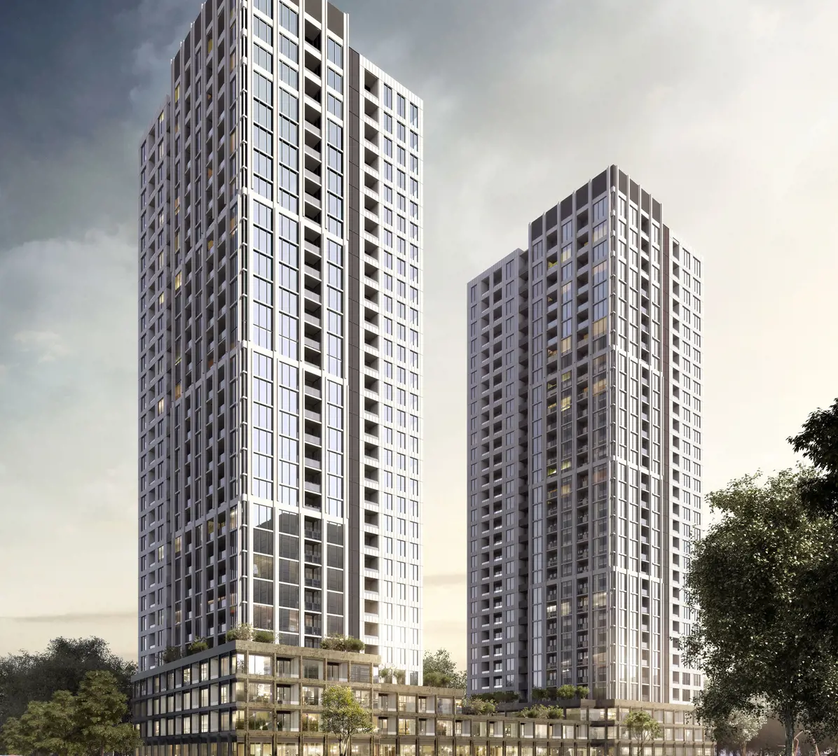 Introducing two 30-storey towers on Trafalgar Rd. just north of Dundas St. W., overlooking parks and ravines and ideally situated close to shopping and transportation. Quick and easy access to Hwys 403 and 407, and the future Uptown Core transit hub. The tallest condominiums approved to date in Oakville, Distrikt Traflagar will be Oakville's next big address yet.