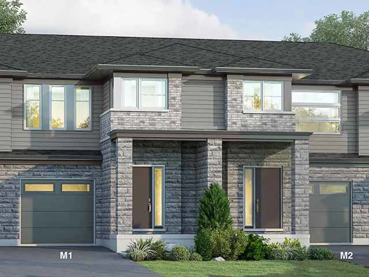 • High quality clay brick veneer and vinyl siding as per rendering for front elevation. One storey brick veneer for sides and rear with remainder of second floor to be vinyl siding unless specified otherwise.