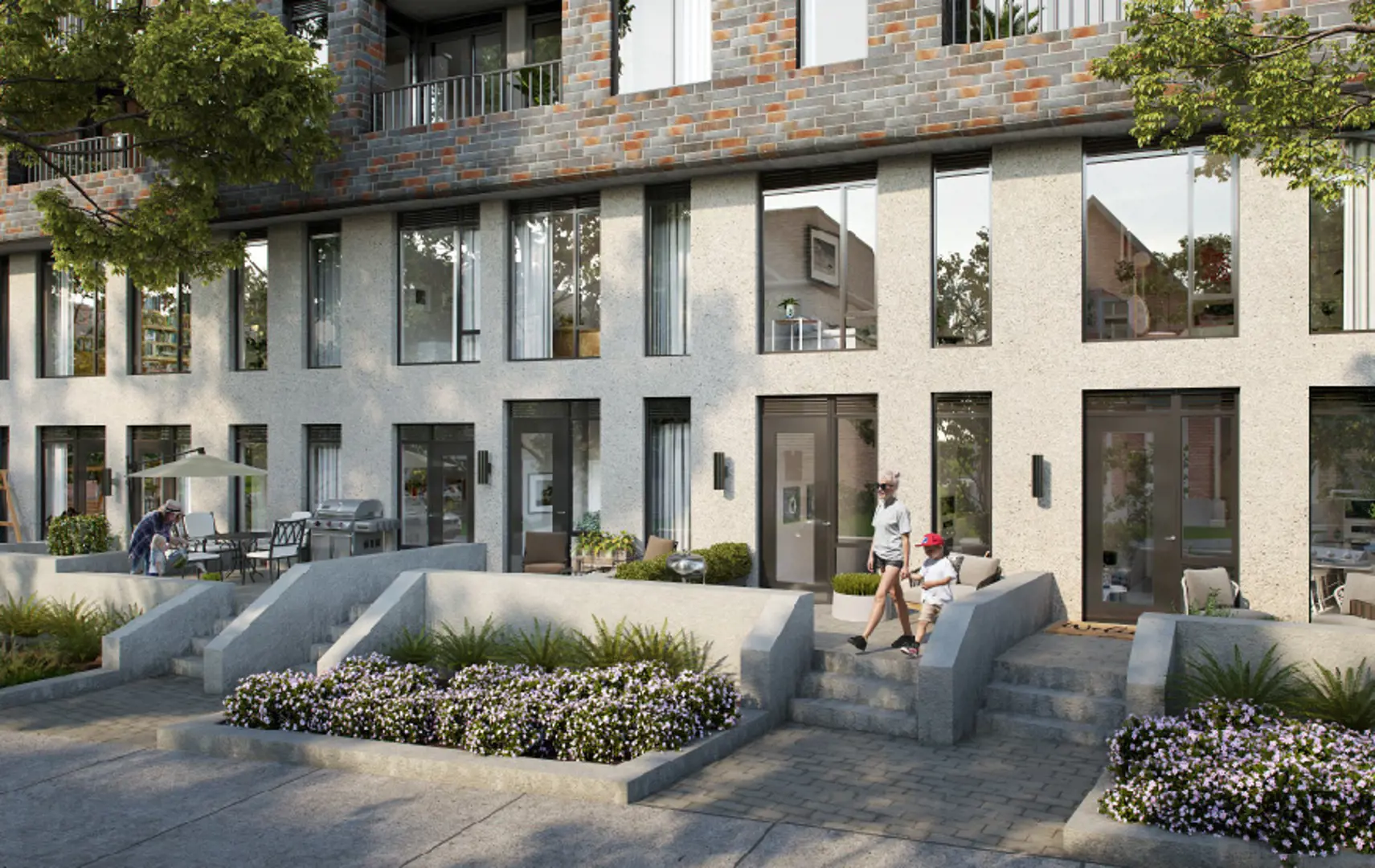 Located on the south and east sides of ground-level, these two-storey units offer residents the look and autonomy of a townhouse with the convenience of condo living.