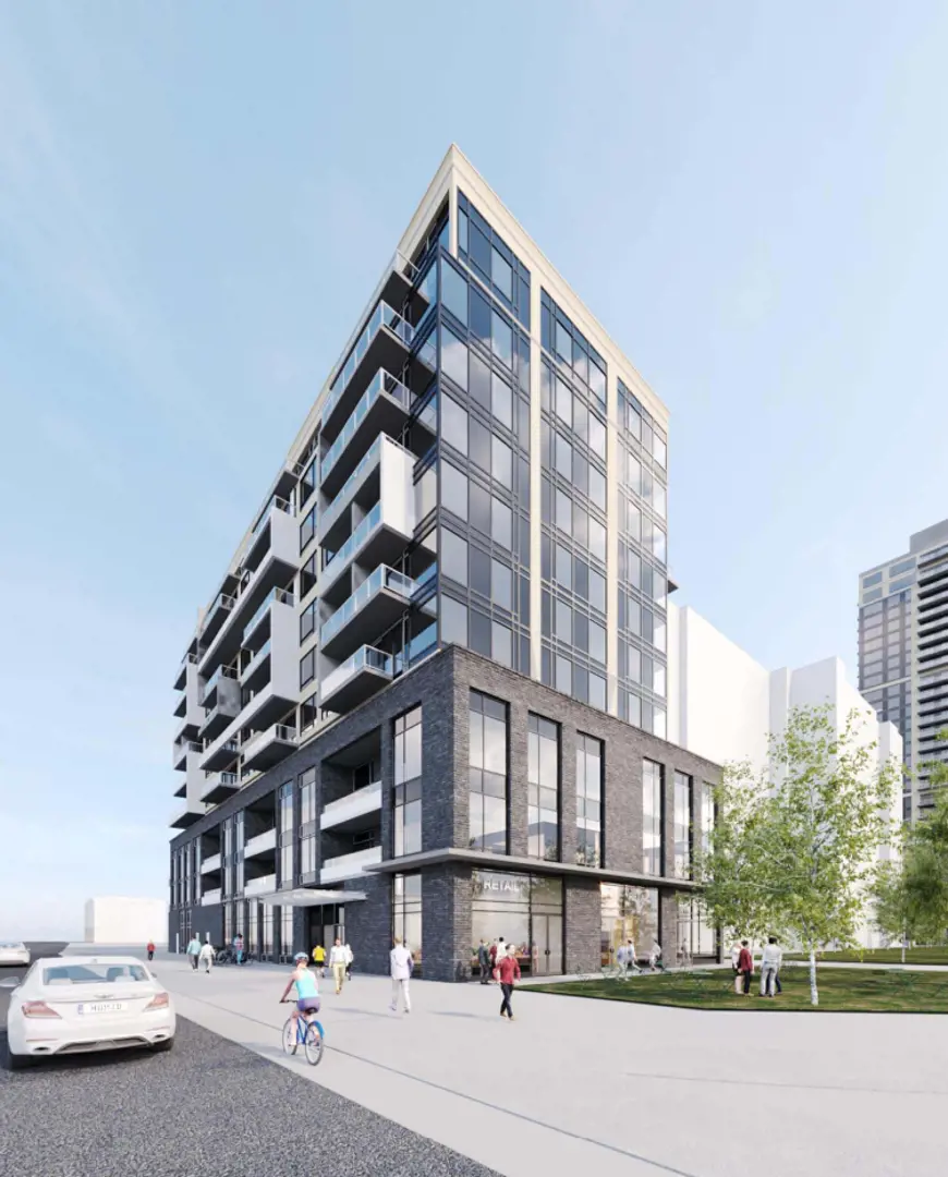 Located in the across from Bridlewood Mall at Finch Ave. and Warden Ave., the proposal is for two new residential buildings. The 29-storey and 11-storey buildings contain 462 total residential units, with over 40% designed for family-oriented 2 and 3 bedroom layouts. Between the 2 new buildings we have proposed 946 sq.m of indoor and 870 sq.m of outdoor amenities. New and existing residents will also have access to 1,100 sq.m of new proposed outdoor amenity space, adjacent to the 920 sq.m proposed Public Park. Two Privately Owned Publicly Accessible Spaces (POPS) have also been proposed, 360 sq.m at the North, and 330 sq.m on the South which facilitate green pedestrian connections throughout the proposed site plan. Existing residents will have a redesigned lobby, with a new Western entrance to the building which provides a convenient and direct access to Warden Ave.