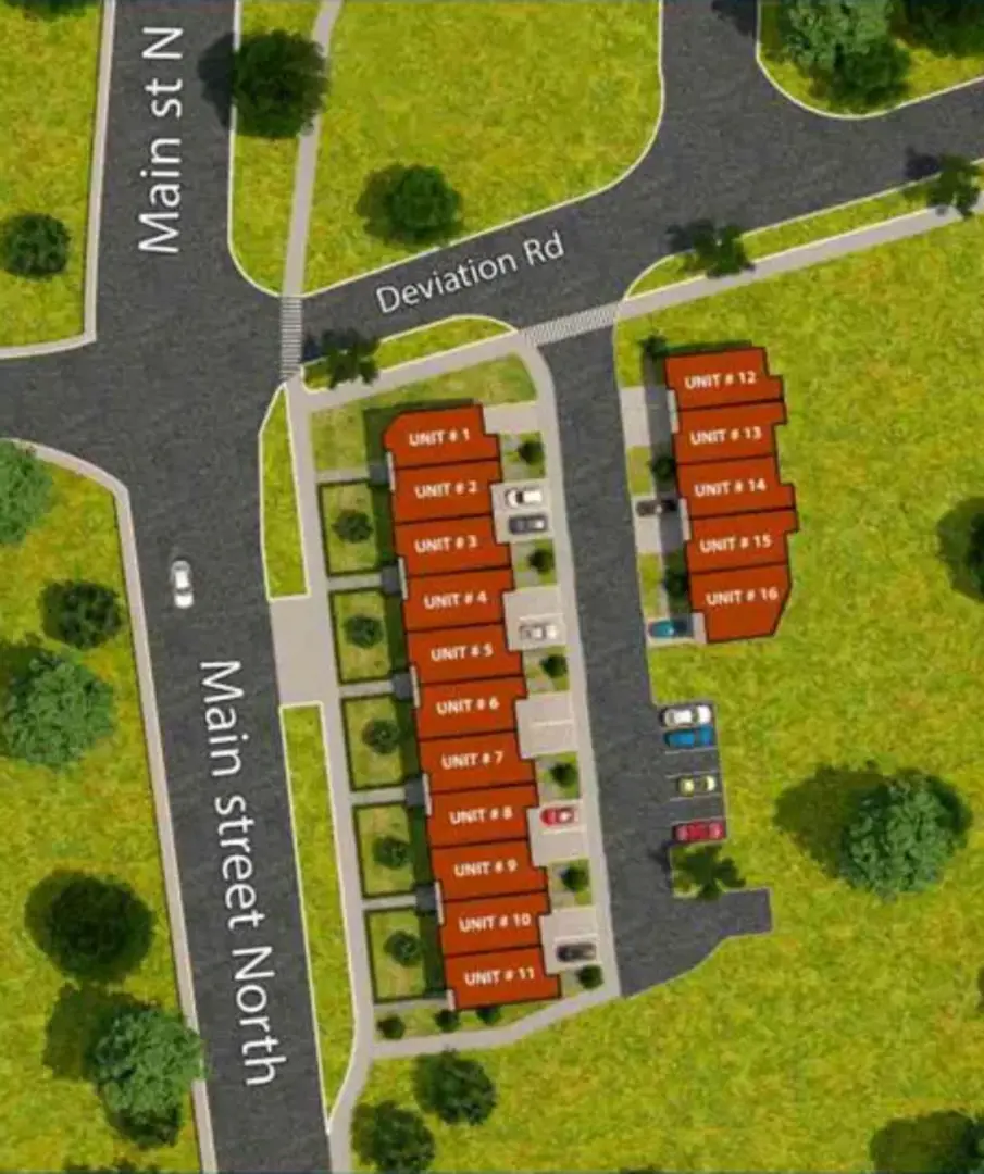 The magnificent Diamond on Main includes a total of sixteen townhouses, four of which are cornered, connecting to Old Main Street