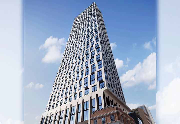 Iconic, integrated, and impressive – behold a true expression of artistic architecture. The fully restored historic corner building acts as an architectural counterpart to the modern brick and stone podium housing over 2,000 sq. ft. of retail; and the 52-storey residential tower that rises above. The vision, an interplay of inverted U-shaped white metal panels punctuated by black metal pixels playfully enveloping the building in a distinct fish-scale pattern. The effect unlike any other in the sky.