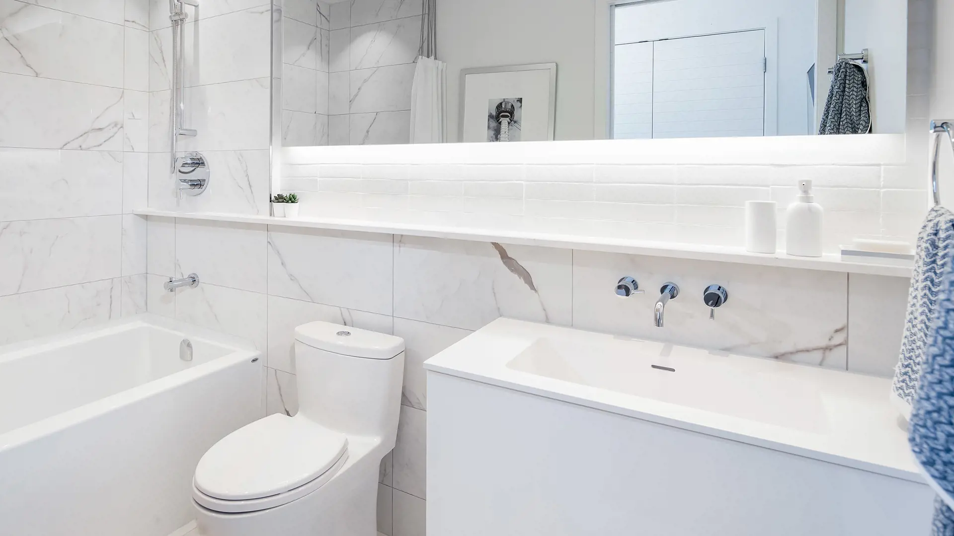 . Seamless quartz countertop & backsplash with undermount sink