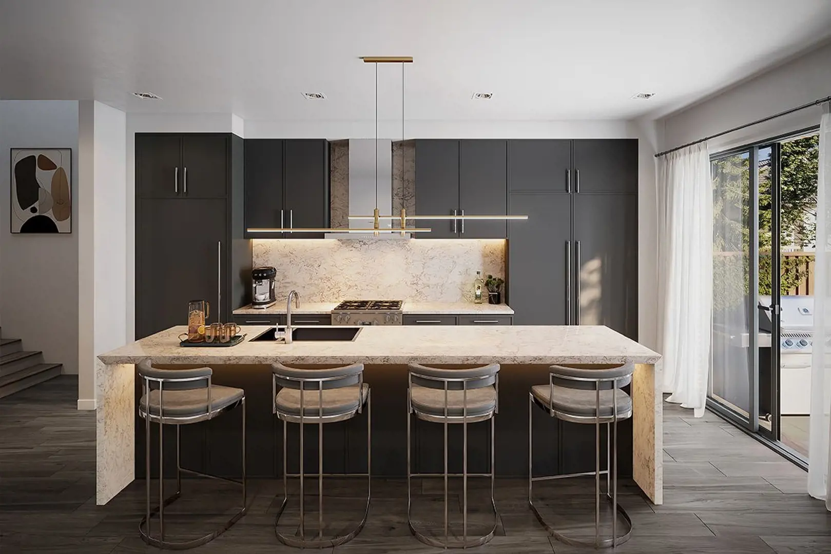 26. Quartz countertops in kitchen/servery areas (as per plan) from vendor’s standard samples.